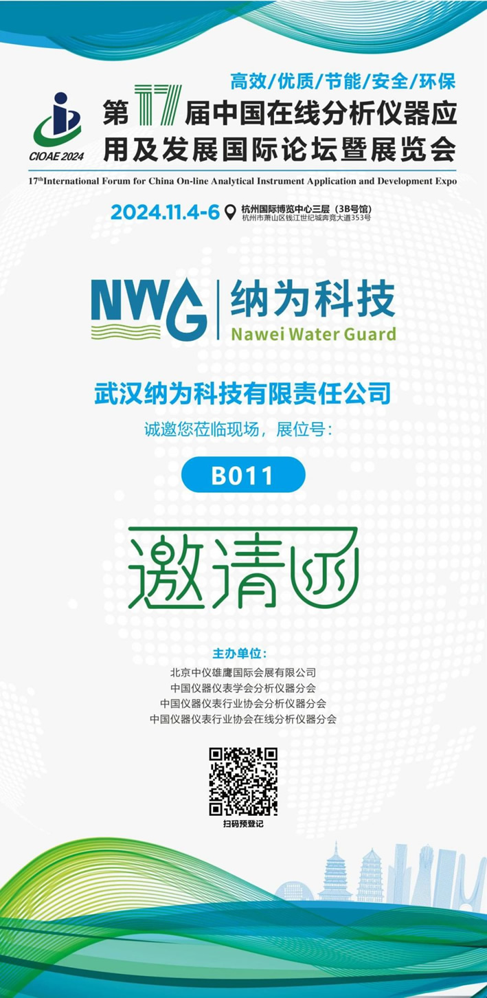 武漢納為科技有限責任公司將于 2024 年 11 月 4 日至 11 月 6 日參加在杭州國際博覽中心舉辦的第十七屆中國在線分析儀器應用及發展國際論壇暨展覽會。